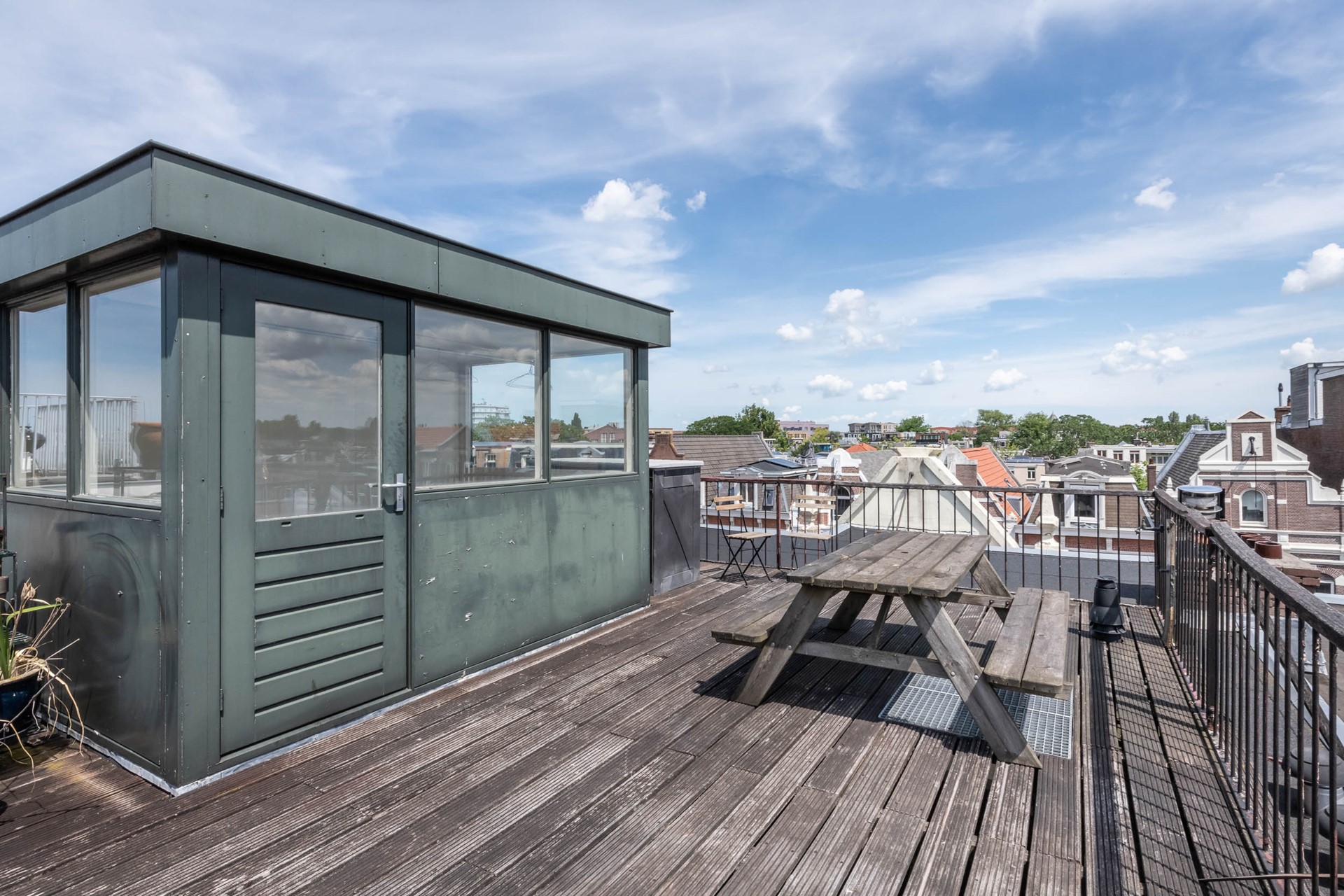 4e verdieping; Het dakterras, bereikbaar door middel van een vaste trap en opbouw.