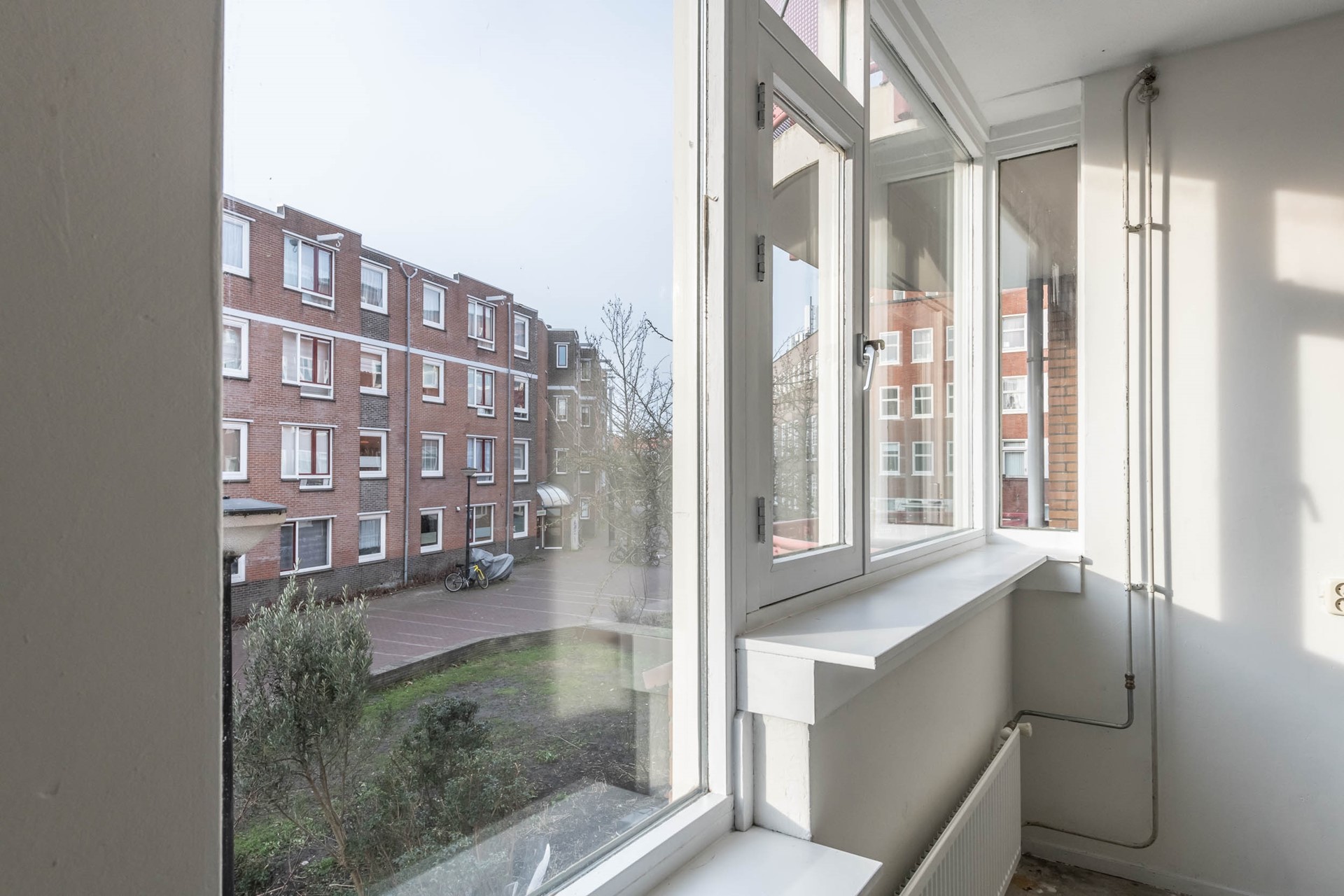 Het complex ligt aan de levendige Insulindeweg in Amsterdam-Oost, maar de woning zelf bevindt zich aan de volled...