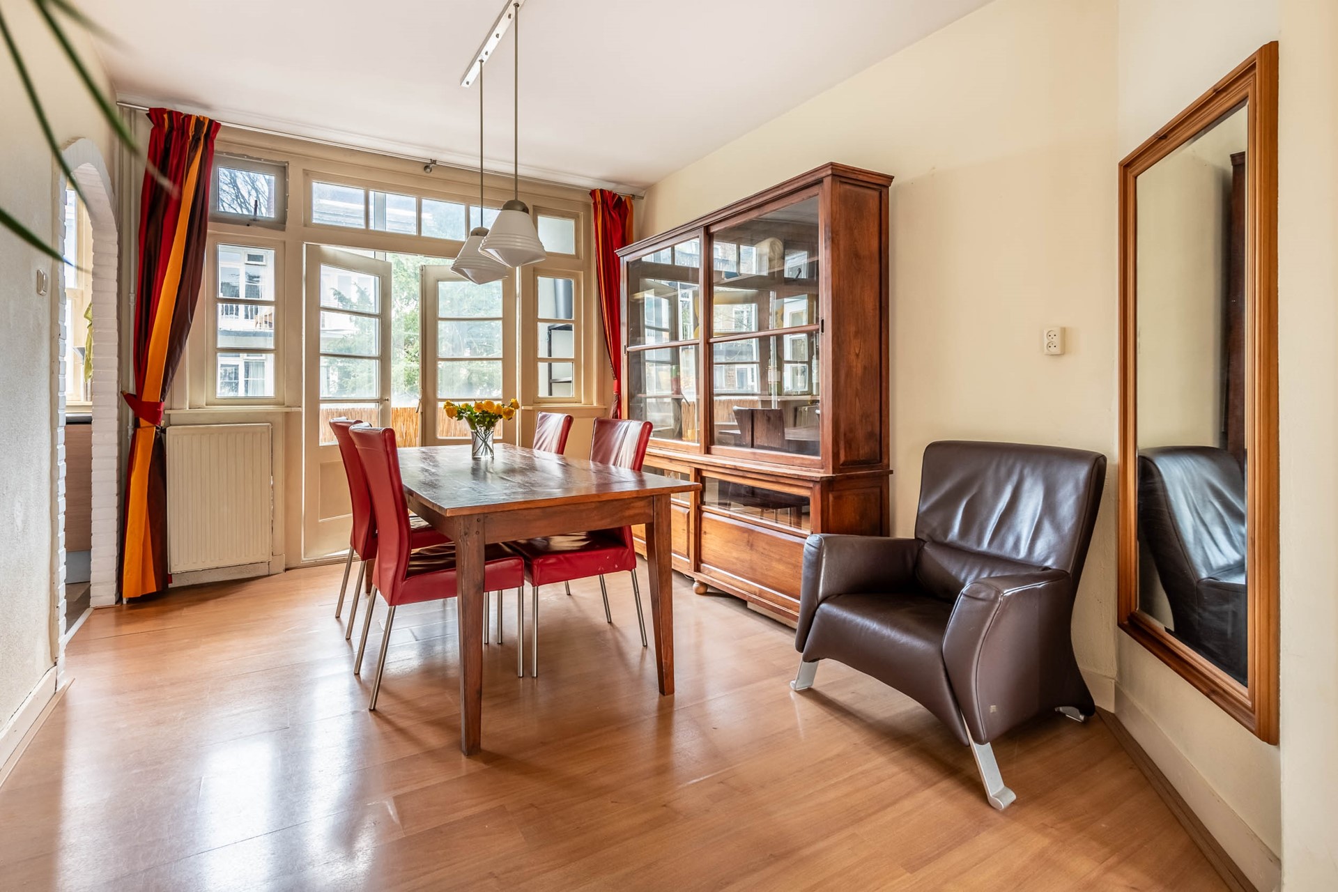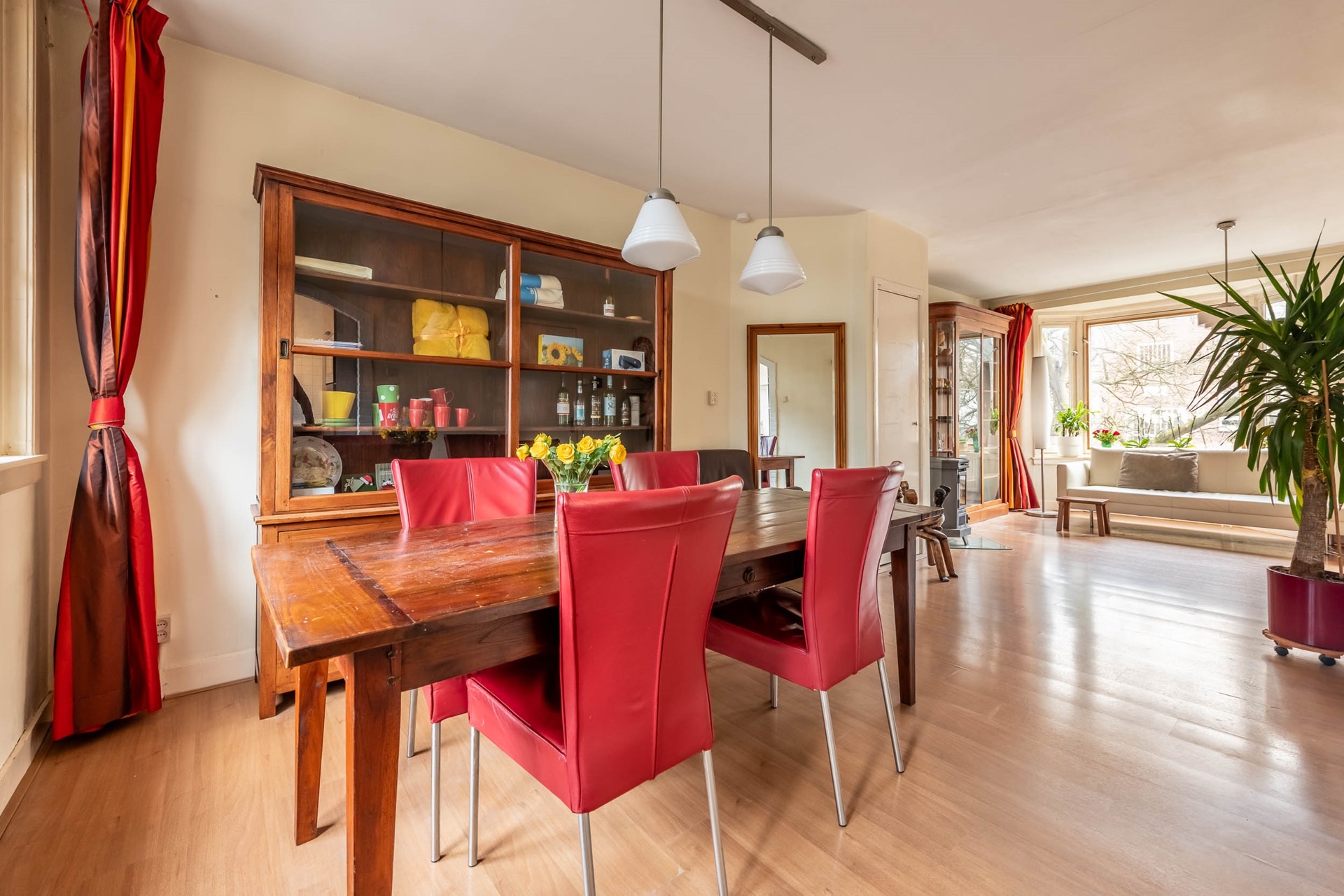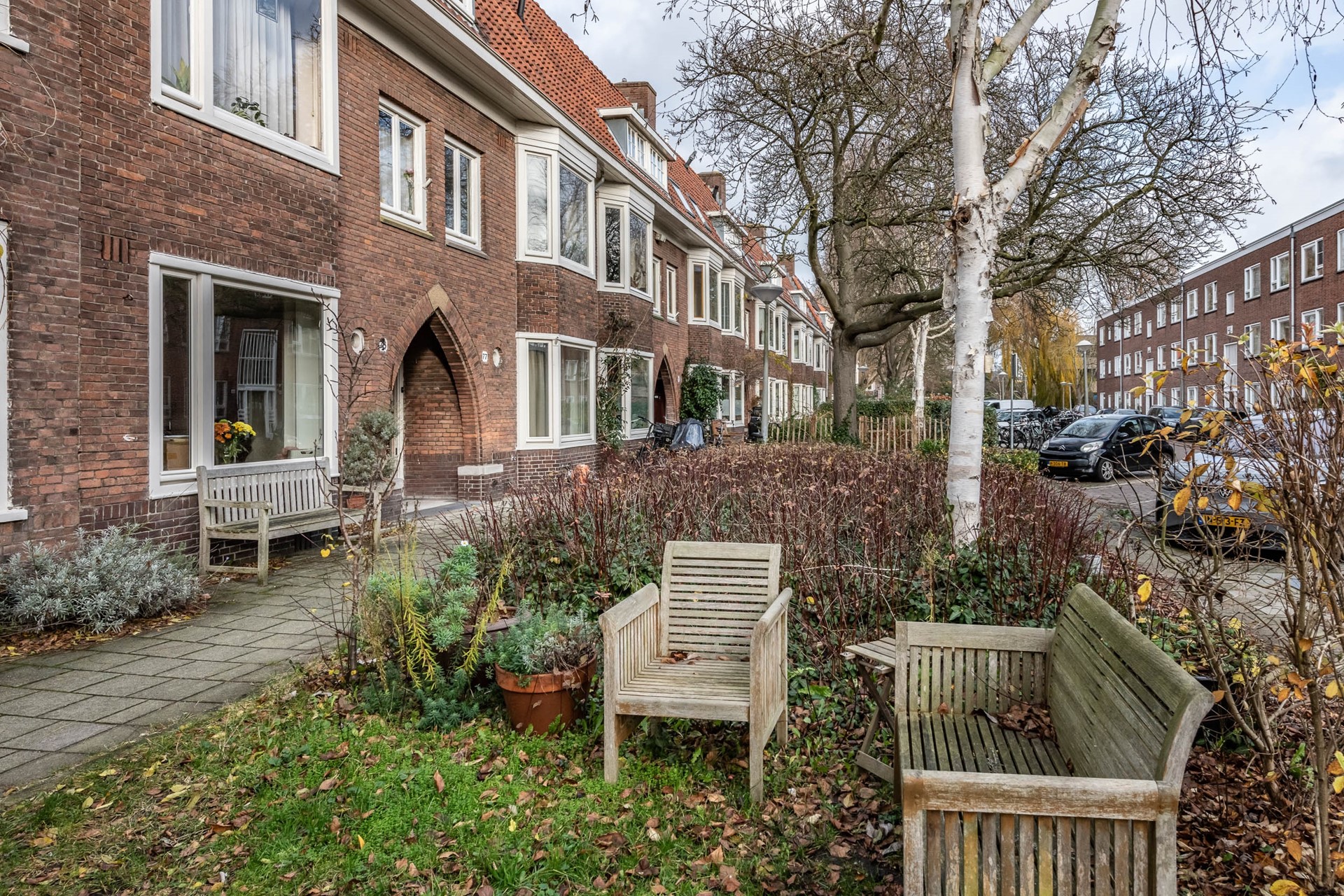 What immediately strikes you upon entering is the light and atmosphere; it instantly feels like home. In addition to the cozy fireplace and bay window in the living room, one of the charms is the beautiful roof terrace. A wonderful place to enjoy. Need more space now or in the future? Several neighbors have added extensions.