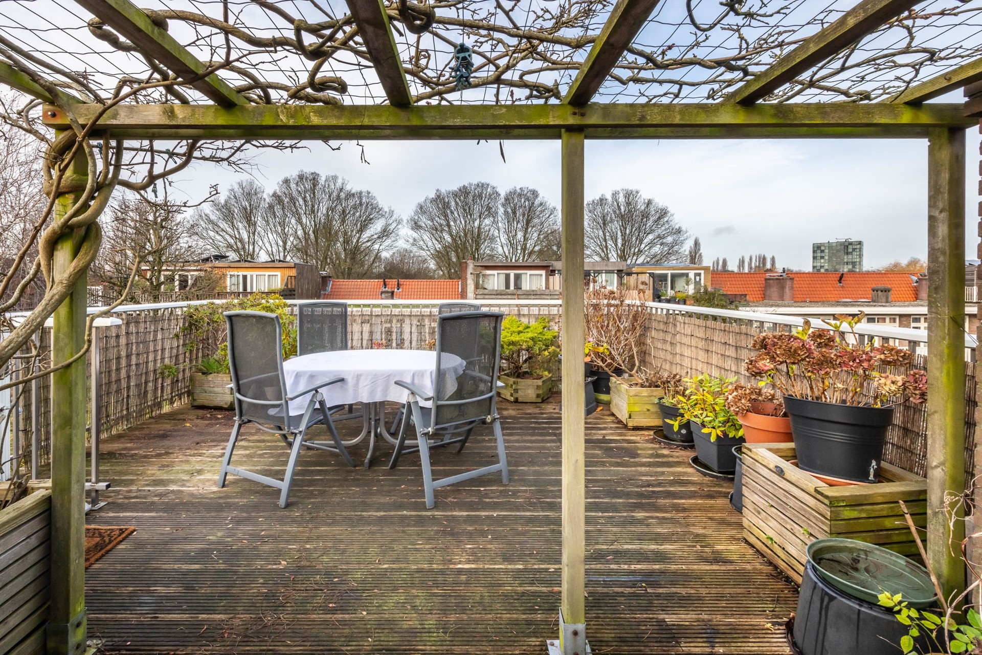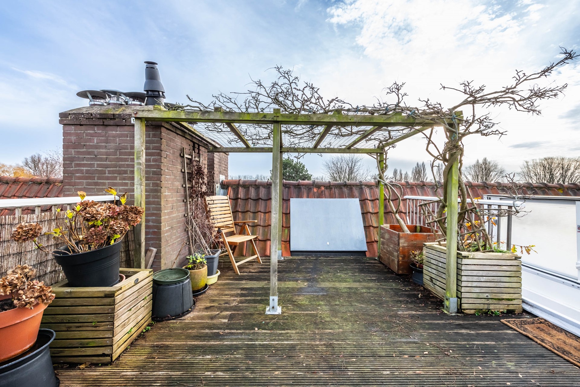 Met een balkon op zowel de 1e als 2e verdieping en een heerlijk dakterras van 27 m² op de 3e verdieping zit het met de buitenruimte meer dan goed. De balkons liggen op het noord-westen, met zon in de namiddag en avond. Vanwege de ligging en omliggende bebouwing kunt op het dakterras de hele dag genieten van de zon.